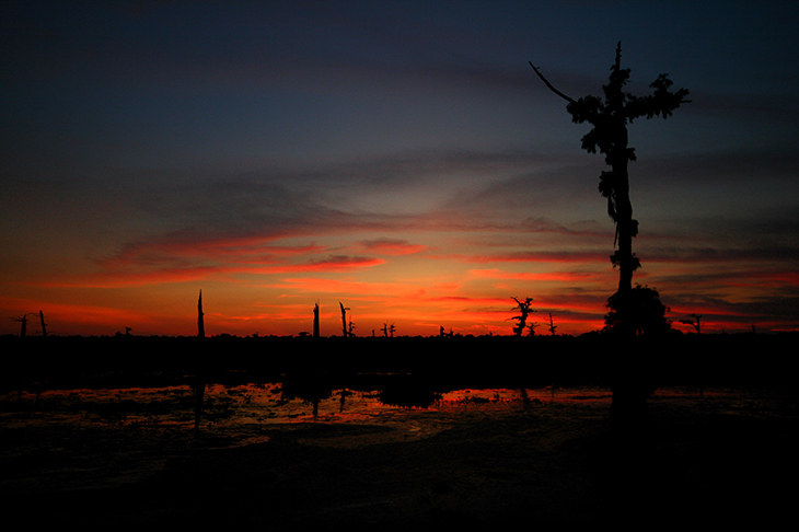 As his admirers know, Burke is no mere crime novelist. His lifelong subject is the fall of man, and Louisiana is his demi-Eden. The swamp maples and mossy oaks, the pinks of dawn and the crimson hues of twilight are all here again, though the mood is autumnal, for Robicheaux’s sand is ‘shrinking, shrinking’. It is appropriate to quote the man from Dorset, because Burke’s bayou is no less evocative than Hardy’s Wessex. They are both great painters of landscape.