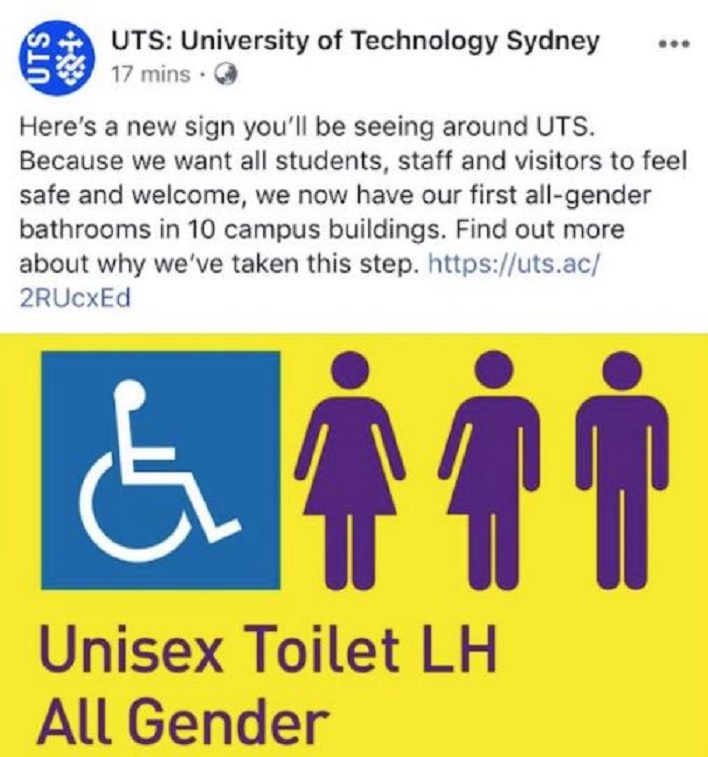 What’s more, why does UTS think that there is a need to provide a ‘safe’ place for people who are gender fluid? Further, as a university, do they have any hard-statistical data to prove that people who are transgender are disadvantaged by going to the same bathroom as people of the same biological sex? Because, even though the trans lobby might try to deny it, there have already been cases of transgender men assaulting girls – including children – in transgender bathrooms