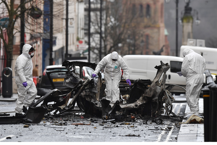 Derry’s recent car bomb underscores a curious omission in all the Brexit argy-bargy about a ‘hard border’. Throughout, neither May, nor Barnier, nor even Varadkar ever utters the letters I, R and A. Yet the scummy residue of this vanquished potato blight lies at the heart of the hysteria about hypothetical border infrastructure that could present a ‘target’. Decorously, no one ever says target for whom.