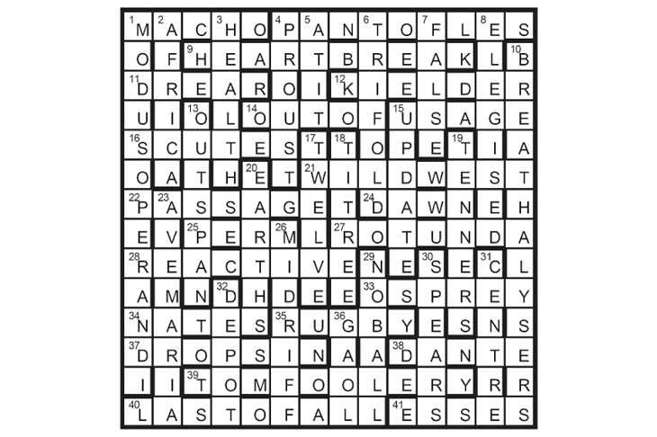 The seven concise clues lead to: heALth centre (3,31), HEARTbreak (9), midrIFf (26), last of alL (40), out of afRIca (14/2), wild WEST (21) and false DAWN (7,24).