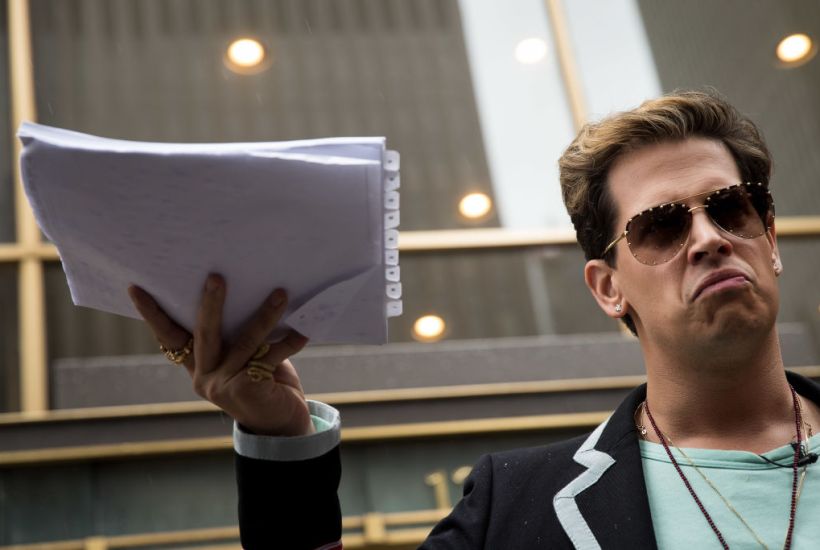 Putting aside the ridiculous reality of refusing entry to those who raise the ire of violent protesters we must also ask what additional damage Milo manages to cause by being physically present. Presumably, most politically engaged Australians already know exactly who he is and what he stands for. His books remain on Amazon, his podcasts and YouTube videos are freely available 24/7 online. His gospel single awaits your download on iTunes. Anyone interested in the political musings of Milo can access them at will – alternatively, they could purchase the print edition of The Spectator Australia and read his columns. He has every possible digital platform at his disposal (with the famous exception of Twitter) – is Australian society in disarray? Do we cower in fear of imminent discord?