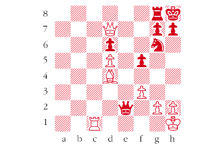 White to play. This position is a variation from Mamedyarov-Li Reufeng, PRO League 2017. This game also started with White playing f3 against the Nimzo-Indian Defence. Can you spot the immediate kill? Answers to me at The Spectator by Tuesday 9 April or via email to victoria@spectator.-co.uk. There is a prize of £20 for the first correct answer out of a hat. Please include a postal address and allow six weeks for prize delivery.