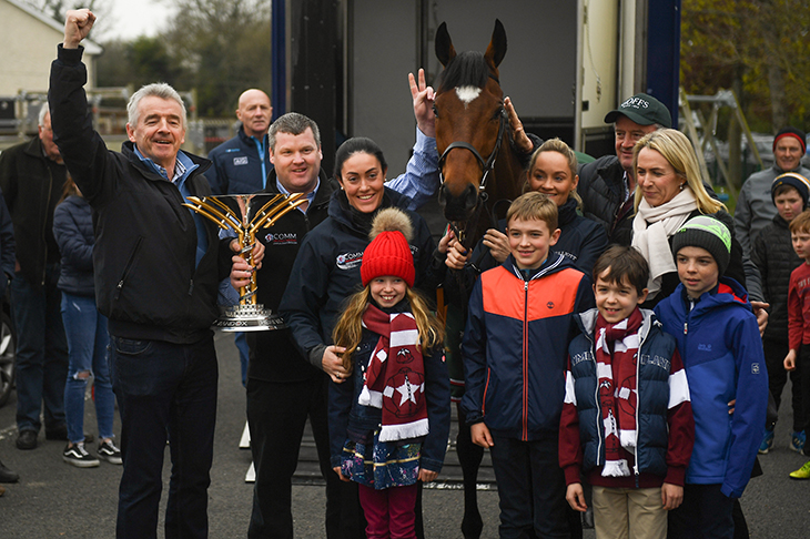 Ryanair tycoon Michael O’Leary might not win Most Popular Businessman of the Year too often but on the track he is a proper racing man, fully tuned in to humanity and sportsmanship. Questioned immediately about going for a third National next year with Tiger Roll he resisted temptation, saying that his little horse might be allotted too much weight and he loved him too much to want to impose such a burden on him. Tiger Roll’s main target next year is to be the Cross Country race at Cheltenham he has won the past two years. ‘If he wins that a third time we’ll retire him. In business you can be greedy. In racing you shouldn’t be greedy.’ Was Tiger Roll the best purchase O’Leary had ever made? Standing next to his wife he earns the quick-thinking award too for his reply, ‘Yes — after the engagement ring.’