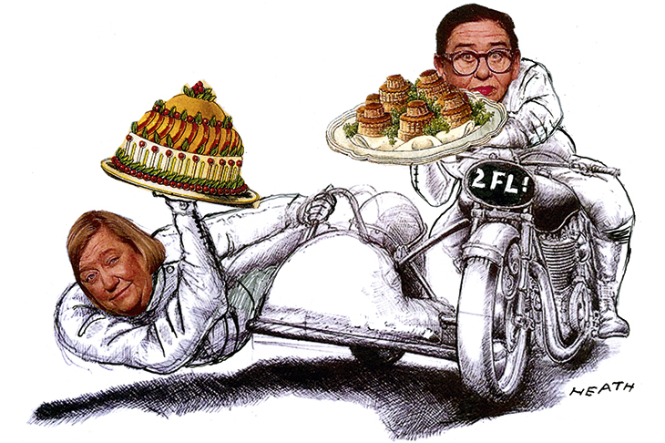 A talented TV producer, Pat Llewellyn, discovered Clarissa Dickson Wright demonstrating the cultivation of an unspeakable vegetable called a cardoon — with a certain panache — on her allotment. Clarissa was then co-owner of specialist shop Books for Cooks. For Pat, she sparked the notion of a fresh genre of character-led cookery programme, with the hosts engaging with the audience through chat to each other. In Jennifer Patterson — food writer and cook at The Spectator, who went to work on her motorbike — Pat found the ideal other half and persuaded the BBC to make a series.