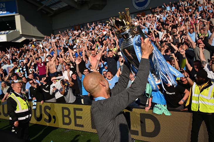 But how well behaved everybody was: the City stand stood and applauded when Brighton’s much-loved veteran skipper Bruno left the field for good with ten minutes to go — even though few City supporters had a clue who he was. And all the Brighton fans stayed behind to cheer as the Premier League trophy was handed over. As they said, they knew they weren’t very likely to see the trophy again.
