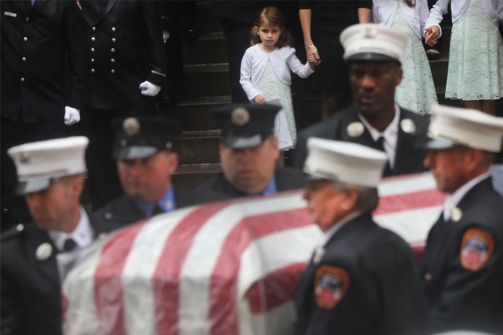 Five days later, 30 blocks on Fifth Avenue have been sealed off. Hundreds of firefighters and Marines in magnificent dress uniform have lined both sides of the avenue, in drenching rain, for Staff Sergeant Slutman’s funeral and cortège, which is televised on a giant screen. This is how America honours its true heroes, and it is utterly perfect.