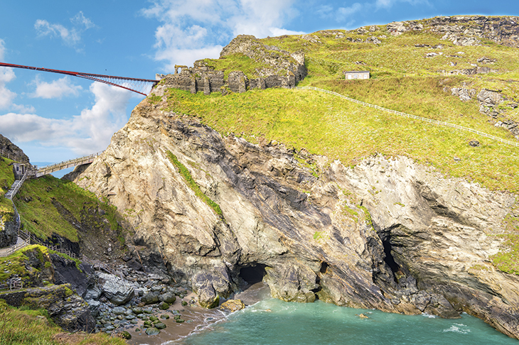 By the Middle Ages, Tintagel was a ruin, and it might have remained so if a medieval hack called Geoffrey of Monmouth hadn’t written a racy book called The History of the Kings of Britain. Some of the stuff he wrote was fairly accurate, but the bit about Tintagel was pretty fanciful. For some reason he decided it was the place where King Arthur was born, inspiring Richard of Cornwall (the younger brother of Henry III, and one of the richest men in England) to build a new castle on the site, straddling the narrow isthmus that linked the old settlement to the mainland.
