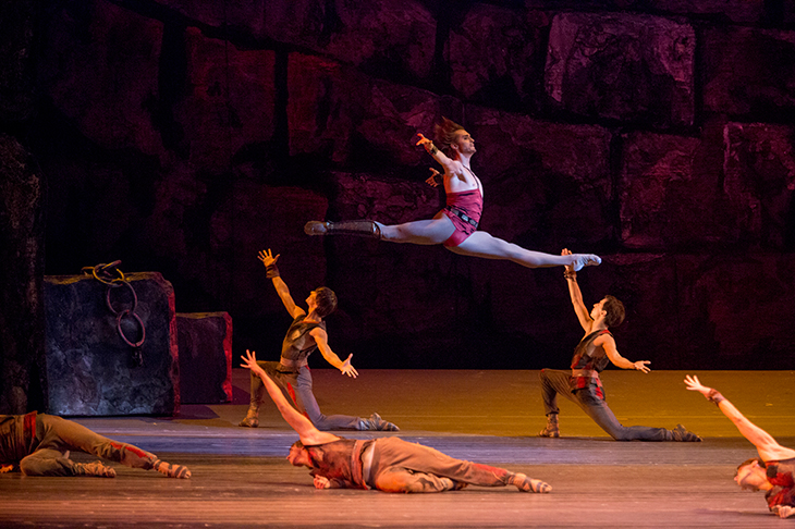 Denis Rodkin is a mighty Spartacus, all vengeful savagery and outraged buttocks. There isn’t a dancer in the Royal Ballet to match his stamina, his power, his splits and leaps, his reckless stretching beyond possible endurance. True, there is more gurning than acting, but naturalism has never been a hallmark of Russian ballet.