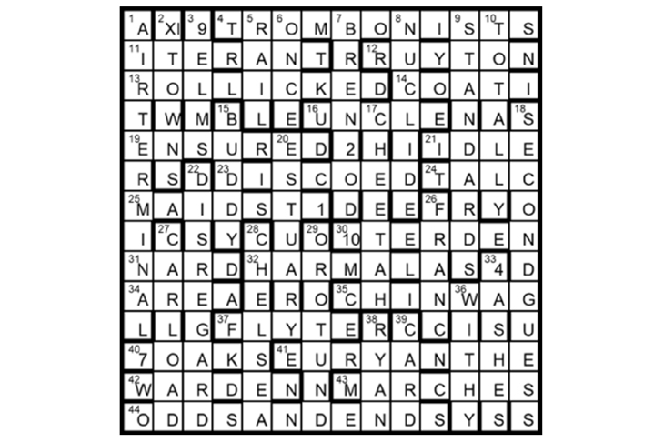 The unclued lights are English place names which include a number in their spelling. These words appeared as figures in the grid — eg BRENTWOOD appears as BREN2OD in the grid. Ruyton XI Towns needed no change!