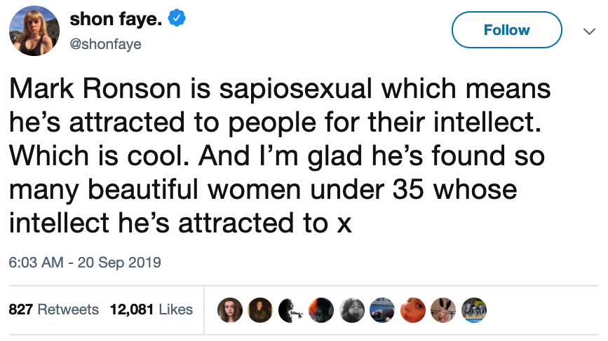 Adding a dash of the ultimate hypocrisy, this tweet took off into the Twittersphere about British musician Mark Ronson: