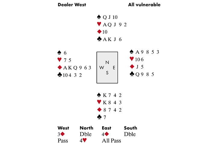 But perhaps the biggest thrills and spills came from the Open team. In this toughest of fields, they made it to the quarter-finals, where they faced the mighty USA1 (every member a previous world champion). As winners of the round-robin qualifier, USA1 could choose their opponents, and in truth, few expected England to survive the two-day battle. But after day 1, USA1 were not just behind — they were an incredible 63 IMPs behind: it was the most dramatic trouncing of the tournament. How could they recover? But the next day, they did — and it was truly gut-wrenching to watch. By the time the dust had settled, they had won by 195–162. England had produced magic, but USA1 had produced even more. Take this example. Artur Malinowski–David Bakhshi were N–S, Bobby Levin–Steve Weinstein E–W (See diagram)