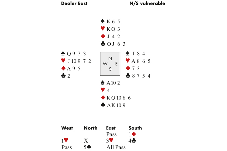 West led the ♥J to the King and Ace, and when East returned one, declarer threw a Spade from hand and won in dummy. After two rounds of trumps, things slowed down considerably; clearly he could not draw all the trumps, or the defence would take a lot of Hearts when they won the Ace of Diamonds. Instead, he tried to knock out the Ace of Diamonds immediately. David Kendrick ducked the first one, but won the second and gave his partner a ruff for one down.