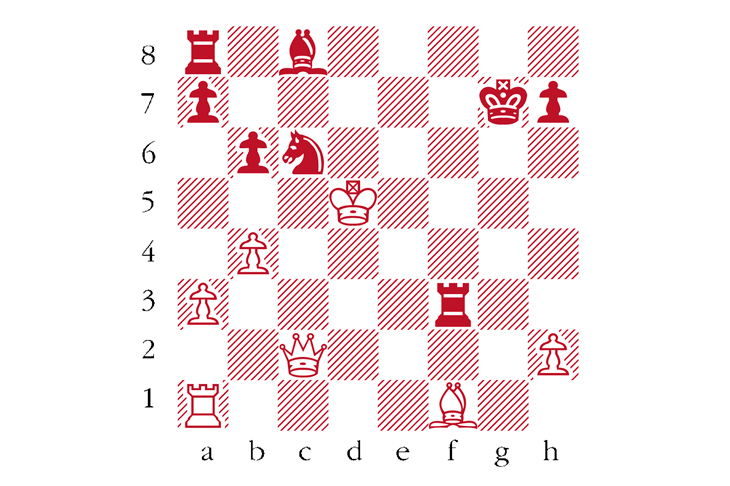Black to play. From Stepanov–Romanovsky, Lenin-grad 1926. Stepanov resigned two moves earlier, seeing that he would soon lose his queen. Romanovsky has just one winning move. Which one? Answers to ‘Chess’ at The Spectator by Tuesday 29 October or via email to victoria@spectator.co.uk. There is a prize of £20 for the first correct answer out of a hat. Please include a postal address and allow six weeks for prize delivery.