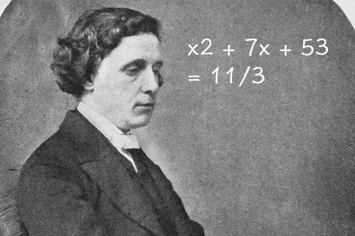 What, though, is the solution to the equation? I have seen it said that there is none, unless a minus sign is placed before the 53. But then it wouldn’t scan, and Lewis Carroll liked regular scansion: 11 / 3 is to be pronounced ‘eleven thirds’, not ‘eleven over three’. I suspect some readers will make sense of the algebra, but I can’t.