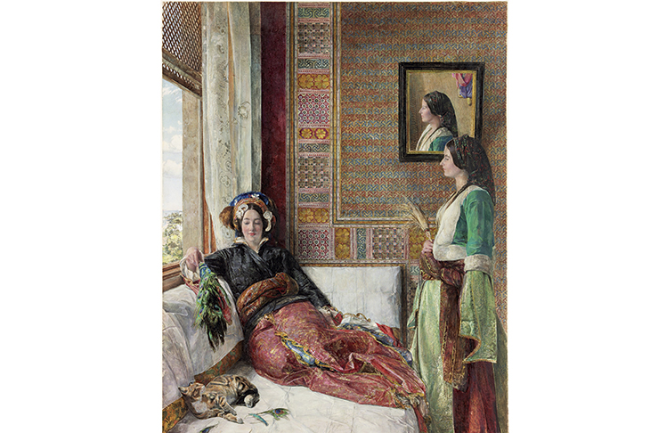 The resulting exhibition, The Enchanted Interior, is a positive aviary of caged birds, among them Evelyn de Morgan’s ‘The Gilded Cage’ (1900–19) inspired, perhaps, by Lamb and Von Tilzer’s song. Millais’s ‘Mariana’ is absent but Holman Hunt’s Isabella is there with her pot of basil, and there’s a trio of ladies of Shalott including a daringly expressionistic oil sketch by John William Waterhouse with broken brushstrokes mimicking shattered glass (see p31). Add in a bevy of oriental beauties in assorted seraglios and you have a whole new perspective on ’er indoors, all set off to atmospheric effect in the enchanted interior of the Laing’s Edwardian galleries.