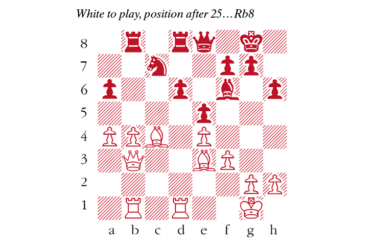 I was most impressed by this game, which demonstrates how the very best players can make chess look easy. In the early middlegame Carlsen secures the advantage by exchanging knight for bishop and clamping down on the weak d6 pawn. In the diagrammed position he creates a powerful passed b-pawn. ‘Nepo’, a famously resourceful player, is hardly permitted a shred of counterplay.