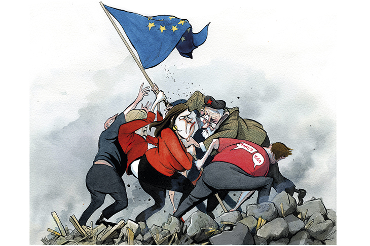 If Remainers could organise themselves into a single political force, they would be almost unstoppable: 45 per cent of the public identify as Remainers, easily enough to win a majority under first past the post. Leavers are about 41 per cent, while only 26 per cent of voters describe themselves as Tory and 23 per cent as Labour. A great many Remainers intend to stick together: as Matthew Parris has said, a new group of voters have formed a ‘band of brothers’. The cause will endure for them, long after Brexit.