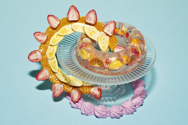 I was delighted to see so many pictures from recipe books included in the show, as well as a number of books from different countries. The interwar and postwar periods coincided with advances in colour printing and photography techniques, as well as the rise of magical ‘convenience foods’. The results are both dazzling and disgusting. Mayonnaise drifts across the surfaces of the dishes. Diced vegetables are frozen in time — and aspic. Everything seems to be a lurid jewel colour, as if it has all been soaked in cochineal. It must have seemed unbelievably sophisticated to the 1950s housewife.