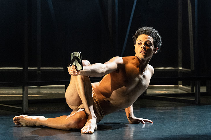 The opening solo is danced by Dane Hurst stripped to his pants in a powerful display of athletic narcissism. His only partner is a small hand mirror at which he lunges and thrusts. Hurst sprawls and crawls and scratches and writhes and bends his body into double-jointed spider shapes. He is joined by a trio of female dancers — Catarina Carvalho, Sunbee Han and Estela Merlos — in velvet bralets and high-waisted knickers. They are transfixingly nasty. The invitation ‘Come to the cabaret’ has rarely held such menace. Together they form a cadaverous chorus line, all rib cages, cats’ eyes and hostile sexuality. The line between scrawnily sinister and strip show is narrow and at times this tips into Pussycat Doll provocation. It’s the splits that do it.