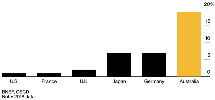 Similarly, heavily subsidised rooftop solar is far more prevalent in Australia than in other countries.