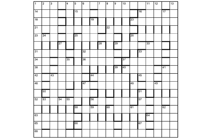 A quotation (in ODQ), starting on the appropriate side of the grid, runs clockwise around the perimeter. The other unclued entries (one of two words, one of three words), will show solvers the event being described, interrupted by some disposals. The original author of the quotation, found in anagrams in symmetrical answers, must be highlighted, as must the name in anagram form of the poet who wrote about the ‘event’.