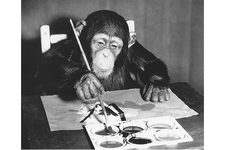 This naked ape (Morris thankfully never demeaned Congo by dressing him in a beret or smock) is back in the news. This month, 55 of Congo’s paintings are being exhibited at London’s Mayor Gallery and are expected to sell for up to £6,000. That may be an underestimate: when Bonhams auctioned Congo’s work in 2005, three of his paintings went for £14,400 — more than 20 times their estimate.