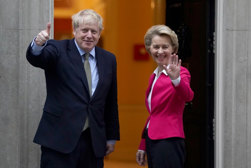 This, anyway, is the British plan. What the EU makes of it is another matter. Its view is that the UK’s size and proximity means that even a Canada-style free-trade deal would require stringent ‘level playing field provisions’ — i.e. demands that Britain adheres to various EU rules. On her trip to London this week, the new Commission President Ursula von der Leyen was keen to stress that she wanted a deal with no tariffs, no quotas and no dumping. ‘Dumping’ is Brussels’ code for other countries not agreeing to follow EU rules on social and environmental rights. Brussels also keeps stressing that an agreement to align with EU standards is the quickest way to speed negotiations along. But it is worth remembering that Johnson resigned as Foreign Secretary over May’s Chequers plan because he objected to how it would leave the UK following too many of these rules. ‘If Brexit is to mean anything,’ he said in his resignation letter, ‘it must surely give Ministers and Parliament the chance to do things differently.’ The example he gave was about changing lorry cabins’ heights in the UK to better protect cyclists. The same principle applies to issues from medical trials to public procurement. In his meeting with von der Leyen, Johnson was keen to stress that the future partnership ‘must not involve any kind of alignment or [European Court of Justice] jurisdiction’.