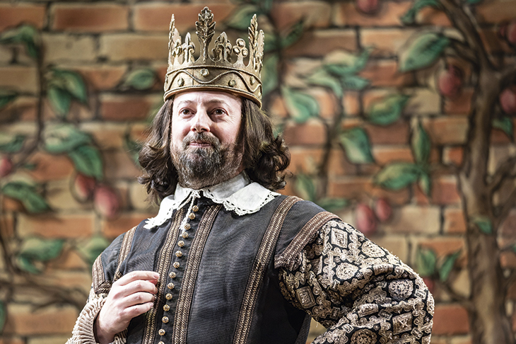 The show is enlivened by Steve Speirs who plays Richard Burbage as a fruity, preening thesp, like Charles Laughton in the bath. Every syllable drips with oil and suds. Danielle Phillips and Helen Monks are superb as Shakespeare’s daughters, who smoke clay pipes and use distorted Brummie accents (‘you’ rhyming with ‘thou’). David Mitchell’s Shakespeare is a mixture of egoism, uncertainty, fun-loving mischief and Pooterish irascibility. ‘I’m not bald, I have shy hair,’ he mooches defensively. He follows the script effortlessly as it passes between the Jacobean era and the present day. His comedy-rap exit line — ‘who da Bard? Me da Bard!’ — might easily have fallen flat. Mitchell’s amused cynicism makes it soar. If you’re taking your kids to this show, and I can’t recommend it highly enough, give them a forward briefing on the plots of Twelfth Night, King Lear and Othello. A short lesson on Shakespeare’s family (his two daughters and the early death of his only son, Hamnet) would be a useful addition. This is comedy gold.