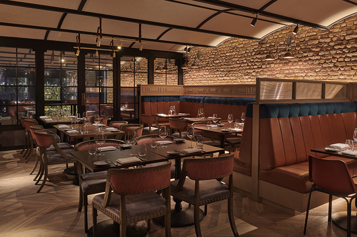 The Yard is a defiantly themed restaurant in Hyatt’s new Great Scotland Yard Hotel, an Edwardian red-brick block which once housed the Central Detective Unit of the Metropolitan Police and its constituent darkness. You have to work hard to dispel that kind of horror, and Hyatt tries: the hotel is extraordinarily lush and over-styled, even for these mad days. The lobby, for instance, features a chair that is half rhinoceros but, in dreaming up the rhinoceros chair, Hyatt has invented a piece of furniture only a rhinoceros could appreciate or reach. The sofa opposite has three sequential cushions, which when placed together create a picture of a dachshund, and I can’t imagine anything more pointless.