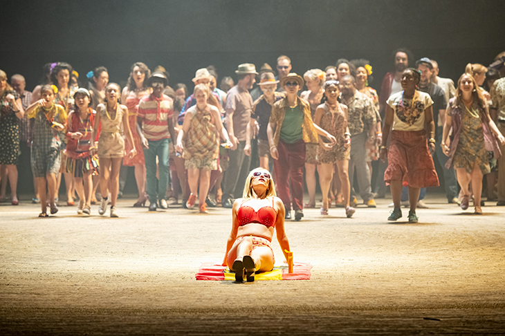 In retrospect, the fact that this show has been in ENO’s repertoire since 2012 should have been a red flag. Michael Tanner spotted it first time around: this is actually a fairly straightforward updating of Bizet’s opera. We’re in the 1970s — the fag end of the Franco years — and one set of Spanish stereotypes replaces another. Flamenco skirts and sun-kissed plazas give way to Ray-Ban-wearing soldiers, trashily dressed tourists and one of those colossal bull silhouettes that are such a primal, unsettling presence in the Spanish landscape, and which Google tells us are actually adverts for brandy.