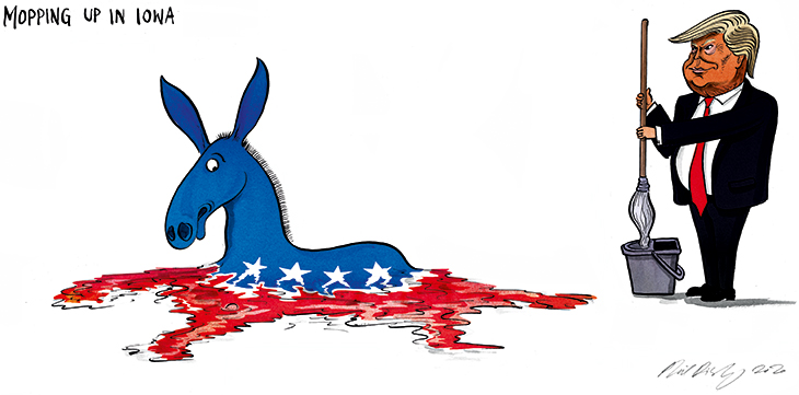 President Donald Trump of the United States said in his State of the Union address that the economy was up and crime down; Nancy Pelosi, the Speaker, stood behind him afterwards tearing up a copy of the speech. The Senate voted by 51-49 (with two Republicans joining the minority) against subpoenaing witnesses in his trial on two articles of impeachment; the trial then moved on to a vote to acquit him. In the Iowa caucuses, Pete Buttigieg and Bernie Sanders were in the lead after delays blamed on technology. President Barham Salih of Iraq named as prime minister Mohammed Tawfiq Allawi, a former communications minister; the former prime minister had resigned in November amid anti-government protests. Daniel arap Moi, the president of Kenya from 1978 to 2002, died aged 95. President Lenin Moreno of Ecuador apologised for saying that at times women only reported harassment ‘when it comes from an ugly person’. George Steiner, the literary critic, died aged 90.