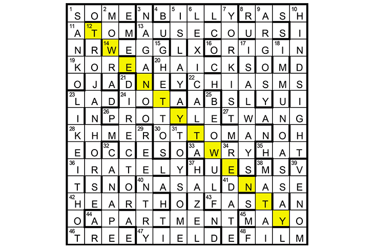 The statement, ‘HINDSIGHT IS ALWAYS (10/17) twenty-twenty’ was made by the FILM DIRECTOR (48/21) BILLY (4) Wilder (suggested by the title). His works include SOME LIKE IT HOT (1A/23D) and The APARTMENT (44). TWENTY-TWENTY (diagonally from 12) was to be shaded.