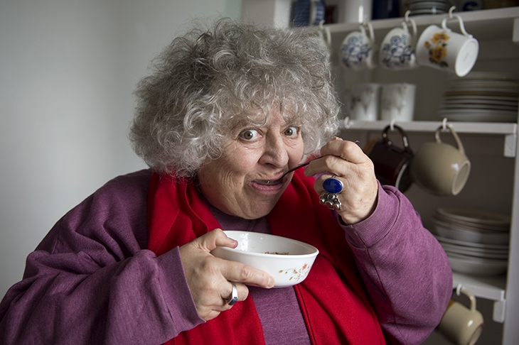 I watched Martin Scorsese’s The Age of Innocence the night before we met. She won the Bafta for playing Mrs Manson Mingott. She was, for me, the compassionate soul of a desolate film, in which her voice emanates from a frilly pile of flesh, failing to stall tragedy. It makes me long to watch her perform Shakespeare, but instead she is doing documentaries such as The Real Marigold Hotel with Stanley Johnson — ‘God, what a pillock.’ I am here to discuss Miriam’s Big Fat Adventure, in which she goes around talking to fat people about being fat. It was plaintive. I wasn’t hungry when I finished it.