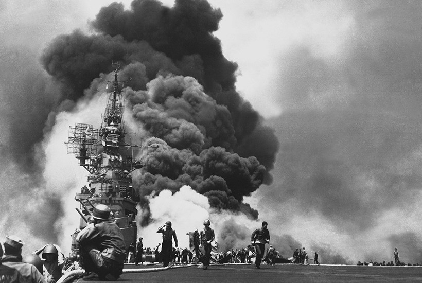 An equally hideous war was underway in the seas around Okinawa, where the US fleet came under repeated attack from kamikaze pilots. These suicide tactics were terrifying and bewildering for US servicemen. They also proved brutally effective — the kamikaze assault of 6 April sank or badly damaged no fewer than 26 US ships.And yet one of the most moving moments of the book comes in an account of a kamikaze pilot saying goodbye to his new wife. ‘When will I see you again?’ she asks. ‘I’ll be back,’ he replies, ‘when it rains.’