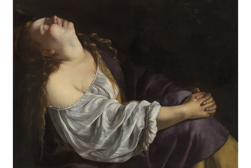 When, you might ask, is the Netflix series? It’s a hell of a story, a seicento #MeToo. Virtue ruined, talent triumphant. To later scholars Artemisia has become a feminist heroine, a survivor of abuse, a woman in a man’s world, a canny player of the market. When portraits of virtuous women of antiquity were all the rage, Artemisia gave the punters what they wanted: Susannah, Bathsheba, Danae, Lucretia, Cleopatra. Noble, yet nubile. A saleable mix of piety and prurience. She catches, though, what male artists might miss: terror, invasion, outrage, disgust. Her poses are new and defiant. Susannah twists and wrenches under the Elders’ leer. The Magdalene in ‘Mary Magdalene in Ecstasy’ (c.1620–25) rocks back, crosses one leg over the other, clasps her knees, almost suns herself in satisfaction. Artemisia brings her so close to the picture plane, you can practically touch and readjust her falling sleeve. Some have seen the Magdalene as a self-portrait, a triumphant reassertion of pleasure and agency. Certainly, Artemisia often put her own features in her pictures: now muse, now martyr, Amazon warrior, avenging Queen.