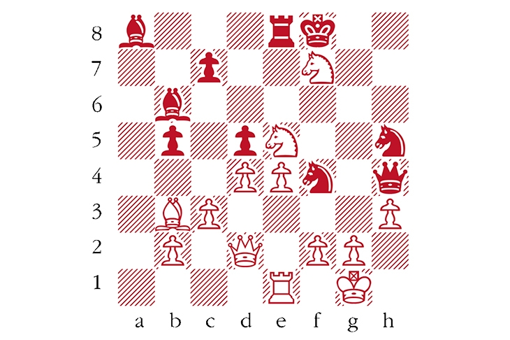 Black to play. Sjugirov–Carlsen, Chess24 Banter Blitz Semi Final. In this wild position, Carlsen’s next move put the result beyond doubt. What did he play? Answers to chess@spectator.co.uk by Monday 27 April. There is a prize of £20 for the first correct answer out of a hat. Please include a postal address and allow six weeks for prize delivery.