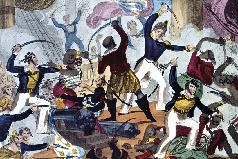 In this period, the archetypical seaman was often referred to as Jack Tar — the second word deriving from the tar with which sailors would cover their jackets in order to enjoy a level of waterproofing in bad weather. Jack may have been ‘pressed’ into service — a technique of recruitment relying more on cudgel-wielding gangs of men than on persuasion — but, as Taylor emphasises, he was just as likely to have volunteered, drawn by the lure of treasure or the excitement of adventure (or spurred by its converse: the fear of drudgery on land). After a hard winter, recruits might show up in port simply in the hope of getting regular meals. Those who stayed in the profession, though, and willingly returned to hazardous duty, often had a certain spirit. An officer in the West Africa squadron wrote: