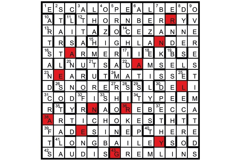 The unclued lights are the four Labour MPs who stood for election as Labour’s leader to succeed Jeremy Corbyn: 11, 18/12, 28/16 and 36/41. The red squares reveal ANGELA RAYNER, the deputy leader.