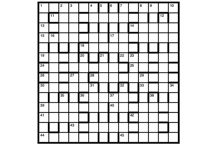 A first prize of £30 for the first correct solution opened on 6 July. There are two runners-up prizes of £20. Please note that until further notice entries should be clearly scanned or photographed and emailed (including the crossword number in the subject field) to crosswords@spectator.co.uk — the dictionary prize will not be available. We will revert to postal entries when the pandemic relents. Please allow six weeks for prize delivery./>