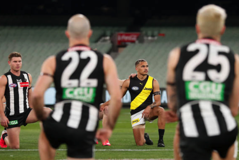 Before round two kicked off on 11 June, players from Collingwood and Richmond announced they would “take a knee” in support of Black Lives Matter, the international protest movement which claims to oppose police violence against black people. By the end of the round, all players at every match had performed the ritualistic pre-game kneeling. Like true rebels, this was all carried out with the approval and support of their clubs and the AFL administrators.