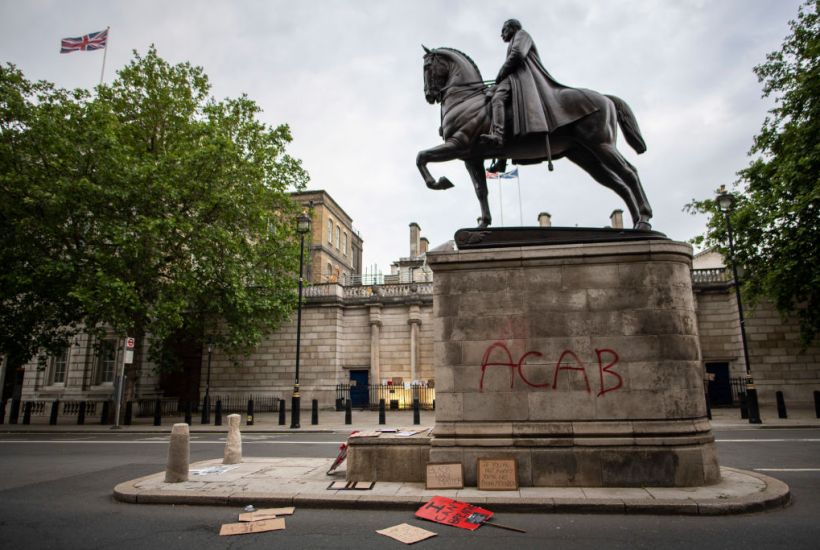 The Whitehall statue had been spray-painted with the letters ACAB, which apparently stands for ‘All cops are bastards’, an extension of the point the protestors had made earlier in the day when they had shouted ‘Fuck the police’ at policemen and women outside Downing Street.