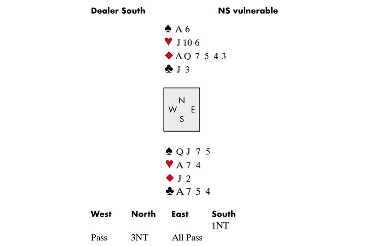 The ♠10 is led. You play low. East wins with the ♠K and returns a spade to dummy’s ♠A. You now play a low diamond from dummy to your ◆J and it holds. You continue with a diamond towards the ◆AQ and West follows small. What now? Both defenders have played in perfect tempo. Obviously if East began with Kxx you have no chance.