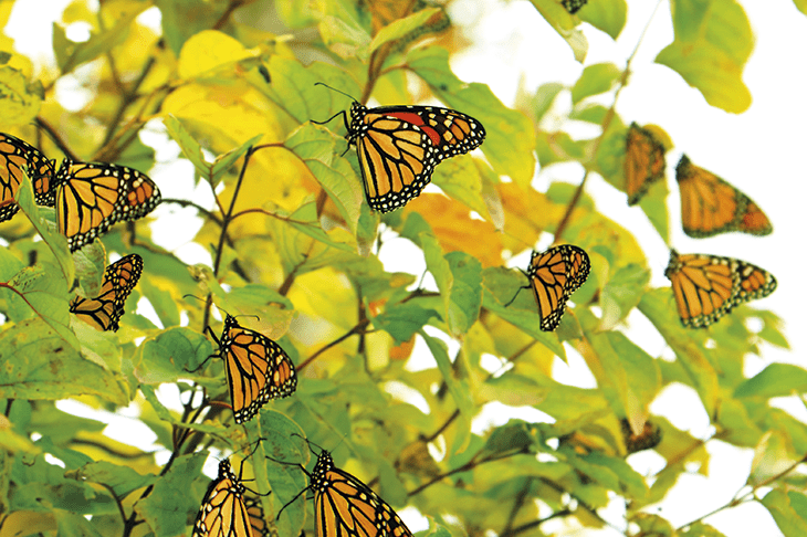 Williams concentrates on butterflies, and chiefly on one species, the Monarch. This is famous for its autumnal mass migrations, flying from as far north as Canada to Florida or California, or down the eastern side of the continent to Mexico. Over-wintering, tens of thousands cluster for warmth on a single conifer and their weight can break branches. In the spring, they become reproductive again, and new butterflies will work their way back up north in successive generations within a single season. Only a specially long-lived ‘super-generation’ will travel up to 3,000 miles south again in the autumn.