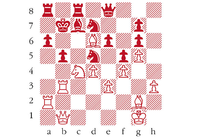 The first is the shrewd pawn-grab 20… Nxb4. It’s risky to open lines for Kasparov’s attack, but Petrosian needs some recompense for his suffering. The second is the gutsy move 30… b5. Petrosian, I imagine, saw a4-a5, Rc2-b2 and Qd3-b1 looming (a heavy piece setup known as ‘Alekhine’s gun’), and favoured fireworks over a slow death. In the third, climactic act of daring, Petrosian dances forward with his king: 35… Kc6!! This dazzling masterstroke confounds Kasparov, whose massed queenside forces somehow cannot touch the exposed king. The path to salvation (36 Bxc7) eludes him and the attack burns out in a desperate flurry. In the final position, the extra horse on d5 snorts proudly. Kasparov is out of bullets, while Petrosian lives to fight another day.
