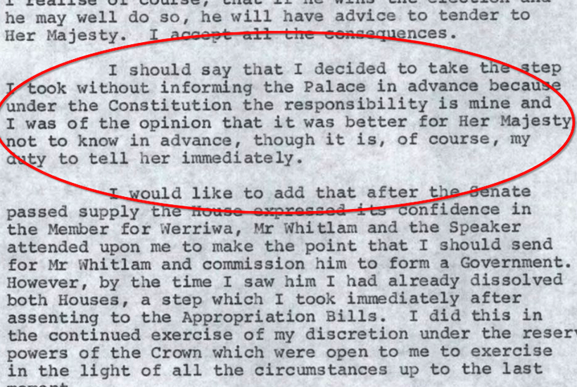 The letters confirm that what Sir John Kerr said in his memoirs was true. And it should be emphasised that it was always Sir John’s wish that the letters be eventually seen, the reason why they were put in the National Archive.