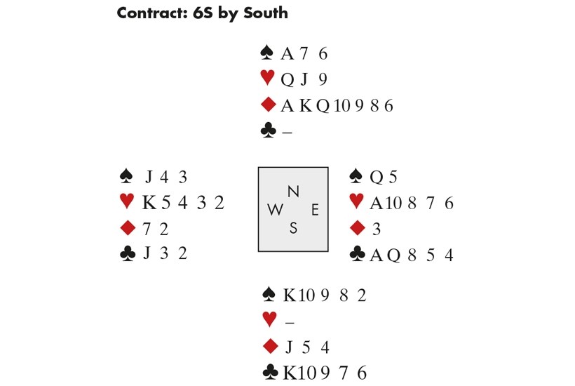 I enjoyed many bridge weekends there. This hand was one of my favourites: Stuart was my partner, and we should have bid to 6D but — blame the lateness of the hour and the amount of wine consumed — ended up in 6S. Stuart was declarer.