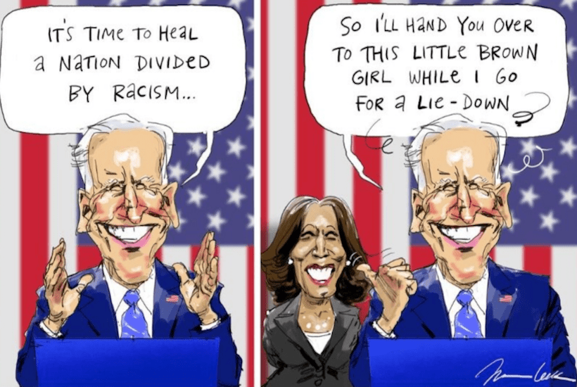 But when a cartoon in The Australian points out Biden’s racism you suddenly find your anti-racist voice by screaming “racist” at The Australian, and thinking we are fool enough to take you seriously.