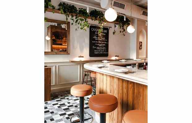 It sits in a parade, opposite a ludicrous cashmere and linen clothing shop — some spurious variety is less pleasing than others — which exists, I think, to persuade local women they are on a Greek island of their imaginings, rather than sheltering under the Westway in a London heatwave, which makes me wonder why they don’t just waive the cashmere and spend the £300 on travelling to Greece. Either side are Zayane (Moroccan) and Falafel King, a marvellously named shack.