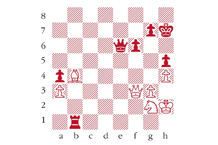 Black to play. McShane–Anand, World Rapid Championship 2017. While executing my last move, 51 Qf4-f3, attacking the h5-pawn, I got a horrible sinking feeling, as I saw what was about to hit me. What did Anand play? Answers should be emailed to chess@spectator.co.uk by Monday 24 August. There is a prize of £20 for the first correct answer out of a hat. Please include a postal address and allow six weeks for prize delivery.