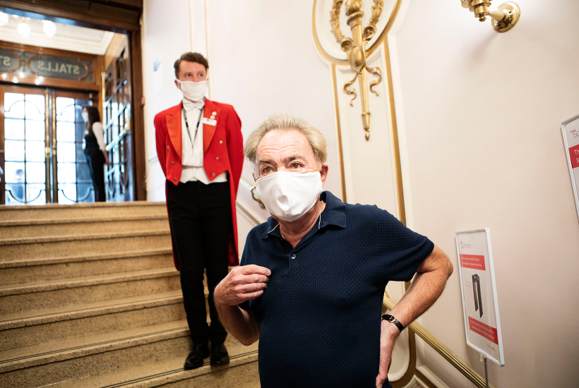 And as we enter Stage Four, what will a trip to the West End feel like? Hard work, is the simple answer. The website for Lloyd Webber’s own theatres features a video for future customers which shows masked cleaners wiping mahogany bannisters with virus-busting J cloths. The advice is to prepare for your visit before you leave home by taking your temperature and checking for symptoms. When you reach the venue, you’ll be required to don your mask and to submit to a ‘contactless bag-check’. To help the checkers you should winnow your belongings down to the barest essentials. As you enter the foyer you’ll be photographed by a thermal-imaging camera which detects your temperature and, presumably, goes beep if you’re over-heating. (Cinemas are already using these devices.)
